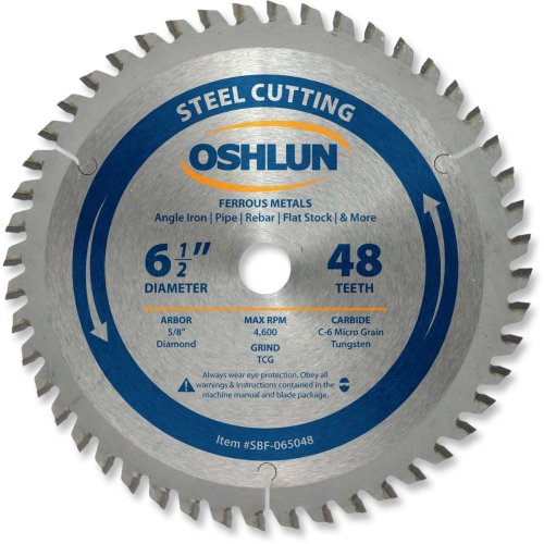 Oshlun SBF-065048 6-1/2-Inch 48 Tooth TCG Saw Blade with 5/8-Inch Diamond Knockout Arbor for Mild Steel and Ferrous Metals Features
